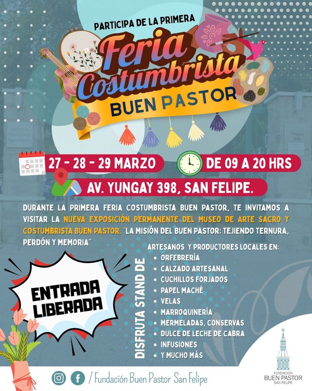 Con una invitación abierta a toda la comunidad del valle de Aconcagua, el Conjunto Patrimonial Buen Pastor se prepara para vivir la Primera Feria Costumbrista Buen Pastor, una iniciativa que busca poner en valor las tradiciones, la cultura y los oficios locales en un espacio patrimonial único en la ciudad.
